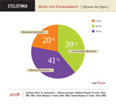 Music for Stockmarkets on ainakin mielenkiintoinen konsepti, Cyclotimian teemojen eli bisnesmaailman ja uskonnon yhdistelmälle uskollinen. Levyn saatekirjeessä kerrotaan että pörssien ja korporaatioiden maailma on kirkon perillinen, ja valuuttojen liikkeet ovat henkisiä virtauksia. Onko tämä rehellinen näkökanta vai ivaa ja kritiikkiä? Yhtyeen oma mielipide jää toissijaiseksi asiaksi. Levyn 32 lyhyttä raitaa edustavat hyvin minimalistista ja entistä kevyempää tyyliä. Syntikkasoundi on pääosassa ja hyvin hyvin yksinkertaiset sävellykset yhdistettynä levyn "hengettömään" teemaan vie mielen Kraftwerkiin, ja itse musiikissa on tuttuun tapaan myös jonkinmoisia Vangelis-vaikutteita. Valitettavasti Cyclotimian syntikkasoundit kuulostavat hyvin digitaalisen ohuilta ja muovisilta. Ensivaikutelma ei herätä suuria tunteita, eikä luultavasti ole tarkoituskaan, jos levyn viestin on tarkoitus olla että maailma on muovinen ja pinnallinen. Mutta silti jossain 24 Hours of Non-Stop Consumptionin kohdalla alkaa herätä vainoharhainen tunne että ehkä pörssikurssien ja ykkösten ja nollien maailman pinnan alla kouhuu jotakin suurempaa. Music for Stockmarkets on 2000-luvun poptaidetta, se on älyllinen kantaaottamaton peili, ja konsepti ennemmin kuin esteettinen elämys. Yhtäältä se on varsin tylsä ja mielenkiinnoton levy, toisaalta se on ehkä lähempänä industrial-musiikin alkuperäistä missiota kuin 99% tänä päivänä julkaistavasta materiaalista. Musiikillisesti sanoisin että Cyclotimia ei vieläkään ole saavuttanut täyttä potentiaaliaan. Björkman |