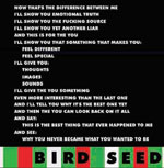 Levyn ensimmäinen kappale Why You Never Became a Dancer alkaa varoittamatta suoraan vasten kasvoja iskevällä feedbackloopilla, joka ottaa tottumattomammalta kuulijalta heti luulot pois. Seuraavat kappaleet, maxisinglenäkin julkaistu Wriggle Like a Fucking Eel ja sitä seuraava Philosophy, ovat juuri sitä korkeita ääniä ja taajuuksia rakastavaa Whitehousea, mistä yhtye parhaiten tunnetaan. Omaa luokkaansa ovat myös Bennettin kynästä peräisin olevat pitkät tekstit, joita hän suoltaa Peter Bestin kanssa kilpaa kaiken tämän melun päälle. Nimibiisi Bird Seed on Whitehousen levynkansia kuvittaneen, hyvänmaun rajoja koettelevista maalauksistaan tunnetun Peter Sotosin käsialaa. Kappale koostuu pelkistä muutamasta puhesamplesta, joissa eri tavoin hyväksikäytetyt naiset kertovat kokemuksistaan. Muihin kappaleisiin verrattuna rauhallinen Cut Hands has the Solution, joka on rakennettu lähinnä pelkästä Bennetin agressiivisesta huudosta, on hieman onton kuuloinen. Munkisi Munkondi päättää levyn samanlaiseen korviaraastavaan ja jo fyysiseksi muuttuvaan kimeään meluun, jota hyödynsivät myös kappaleet Wriggle Like a Fucking Eel ja Philosophy. Muistan Bennettin sanoneen eräässä haastattelussa,