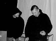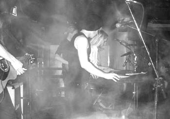 About half an hour later the stage got a new look from lit lanterns hanging from the ceiling, and the crowd was put into the right mood with old war-time schlagers as the three members of Karjalan Sissit´s live set-up took their positions behind their drums. The gig began perhaps a bit uncertainly, but all such feelings were dispelled as Markus Pesonen grabbed the microphone and began yelling with genuine fervor and anguish; "Jeesus ei rakasta, Jeesus pilkkaa!". The atmosphere got more intense and aggressive, and Pesonen´s stage presence radiated honest finnish pain and anguish, which helps to understand the music of Karjalan Sissit much better. The band was at it´s best in the most aggressive songs, but also quieter, more sombre pieces had their own strong mood. After Pesonen had thanked his audience I was left convinces that Karjalan Sissit really is a live band! We wish to thank Aki Cederberg, Juha Wakonen, Mikko Tainio, Toni Ilo, Turun Sanomat newspaper, TurkuTV, Kaos Kontrol, TVO, the artists and everyone who showed up and has supported us over the years. |