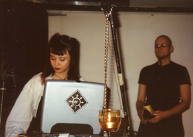 Ovro Now, as this was the 17th concert that we organized, it has become quite obvious taht KMY has had quite a lengthy career. This time it was the turn of some more recently appeared artists, of the kind that specially appeals to people heavily into the post-industrial scene; From Sweden, the rhyhmic industrial act Des Esseintes and one other young (but manned by experienced artists) group: Beyond Sensory Experience, a very prolific producer of challenging ambient-industrial. As the Finnish (and local) representative we presented Ovro, an artist from the Some Place Else label, who through things like her frequent live performances has gained a strong reputation as a masterful creator of esoteric soundscapes. The gig strongly resembled our Negru Pvlse / Negru Voda / Moljebka Pvlse / Sine Nomine gig from a year and a half ago. Not just because the Swedish artists were good friends of Magnus from Des Esseintes and the local talent back then was also from the SPE family, but because all of the featured artistsmostly appealed to an audience strongly "within" the scene, meaning that the number of attendees was quite low. Luckily enough the costs were quite low this time as well, so that we did not lose any money. Weirdly enough a lot of the regular faces in our audiences were missing, but on the other hand it was very nice to see a lot of new people attending the show. As the club wasn't as packed as normally, it was of course easier to watch the shows. Ovro started by lighting a few candles in front of the stage. What followed was a noisy start very much in her style, a start from which she then brought forth all kinds of interesting structures. Much new power into the performance (we've already seen quite a lot of them) was provided by the strong live vocals. Especially Niko Skorpio's authoritative shouts that opposed Ovro's own, more gentle voice created a fine moment in the performance. The set consisted of both earlier, already-heard (and published) parts and extremely fresh material that could even have been from the forthcoming album Mosaick the Serpent. |