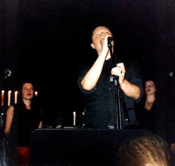 We seem to have fulfilled the wishes of many when we decided to risk it and arrange a concert with Arcana from Sweden. The event was perhaps the largest that can be organized in the context of Kuolleen musiikin yhdistys, but thanks to the audience, it was a complete success. At the same time we were able to present one of Finlands most esteemed industrial acts, Cloama, to a larger audience (and offer a treat for those with a taste for more extreme industrial). It is clear without saying that the economic risk was considerable - we had to rely on a record audience, and that is what we got. Altogether about 200 visitors enjoyed the evening. We hope that many of you were able to experience something new. At least the feedback has been very rewarding. The evening started off with a visiting dj, AAC from Helsinki who played a set filled with old World Serpent classics. Both performances were of first class: Cloama´s industrial set ranked among the best I have heard, a well-balanced whole which crossed stylistic boundaries, moving fluidly from psychedelic ambience to offensive power electronics. Extra flavor was provided by surprise guest Die Blutleuchte. It was foreseeable that the act would not go in well with all of the audience, but those who could appreciate it were certainly given a first class experience, because Cloama surpassed all expectations. One can only wait for the upcoming Cloama CD on Blue Sector. For most, however, the highpoint of the evening was the now 10-year-old Arcana, who appeared with a four-person line-up. The performance, carried with the strength and magnificence of frontman Peter Bjärgö´s and Ann-Mari Thim´s beautiful vocals, lasted slightly more than an hour, during which the artists themselves got so carried away that they played all their extra numbers too. When the audience then did go for an encore, Arcana simply played one of the songs a second time. The set consisted mostly of newer material, but even some early hits from Dark Age of Reason were heard. KMT wishes to thank Arcana and Cloama, Klubi, TurkuTV, everyone who showed up and everyone who helped us in any way. |