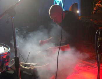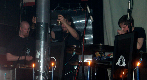 Our perhaps most ambitious project thus far, bringing German cult act Genocide Organ to Finland, has been realised in cooperation with Freak Animal Records. The band is particularly famous for its famed live performances, and certainly did not let down the high expectations of the Finnish audience. Our goal was to make the evening throughly top quality. It was opened by the talented Zoät·Aon from Oulu, who had prepared for the evening with a larger live line-up and intense rehearsal sessions. The set was ceremonially initiated, as the "assistans" lit candles and incense on small "altars" in front of the stage. Zoät·Aon headman Jaakko Vanhala then proceeded with providing incredibly massive consciousness-altering soundscapes. As the music flowed into states of vertigo, the three assistants re-emerged on stage and the real power of the gig was set loose, as the men played tibetan bowls, thighbone trumpets, cymbals and beat a huge sheet of metal in the grip of an increasing ecstatic frenzy.